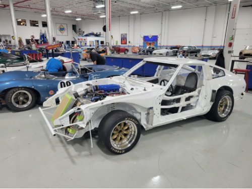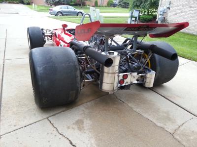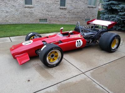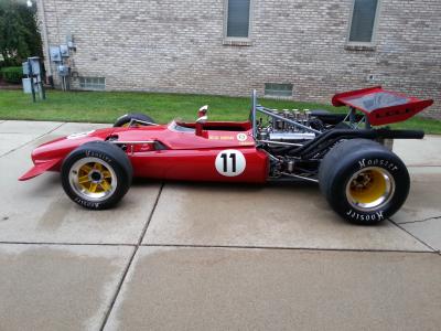 Older documented restoration in 1996. Steel tube frame, Chevrolet 5 liter V-8, Hewland LG 600 5-speed gearbox. Weber carbs. Starts and runs perfectly. Short road course gearing.